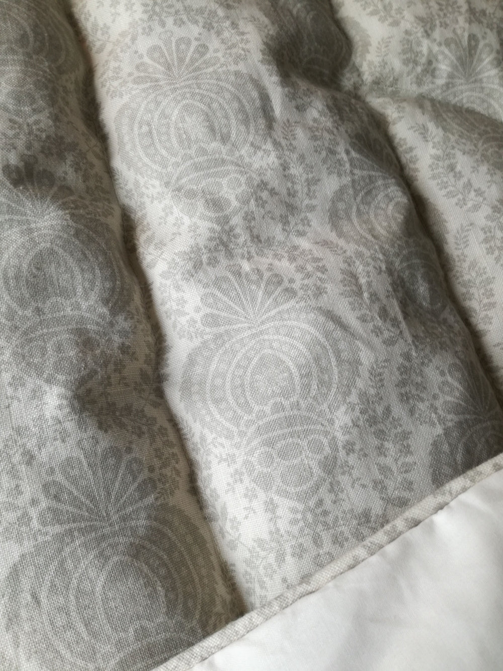 This gorgeous eiderdown has been made with Kate Forman's Margot linen in dove grey...as Kate puts it "So gentle, so understated. This calming dove grey has all the sophistication and appeal to those liking the paler pallet."